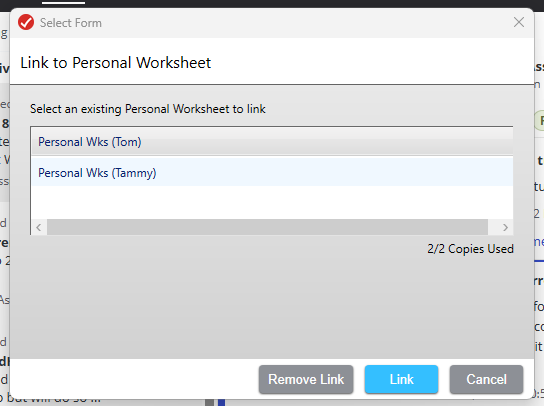 I have tried that - it will not link to either person on the worksheet