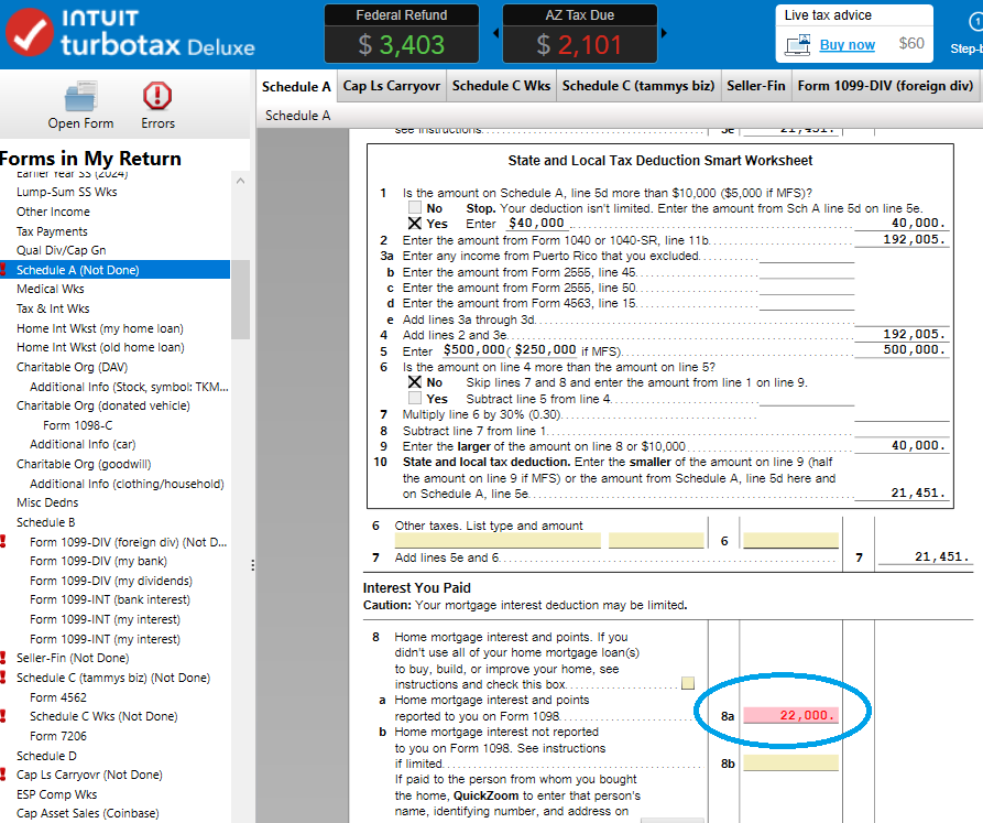 @MarilynG1, thank you for demonstrating the issue being faced by TT customers, i.e., that the software is NOT showing which field is marked as estimated. My screenshot also shows that none of the fields were marked as estimated despite the software stating that it is. My intent in providing the screenshot is to demonstrate this fact. Thus, searching thru forms for something that is not present is indeed futile in this case.