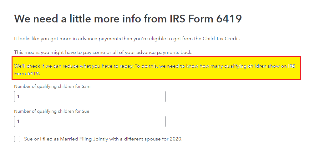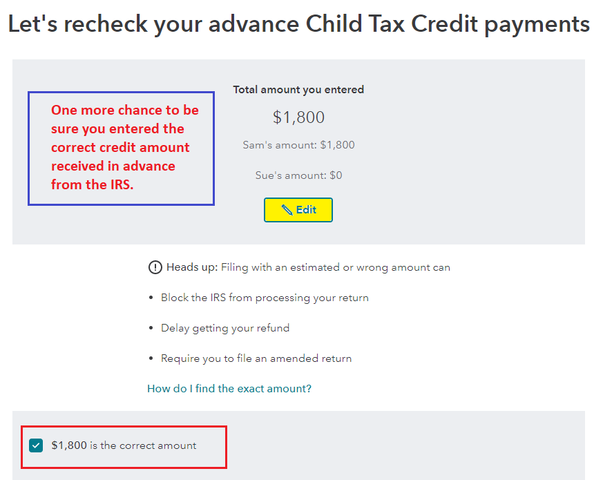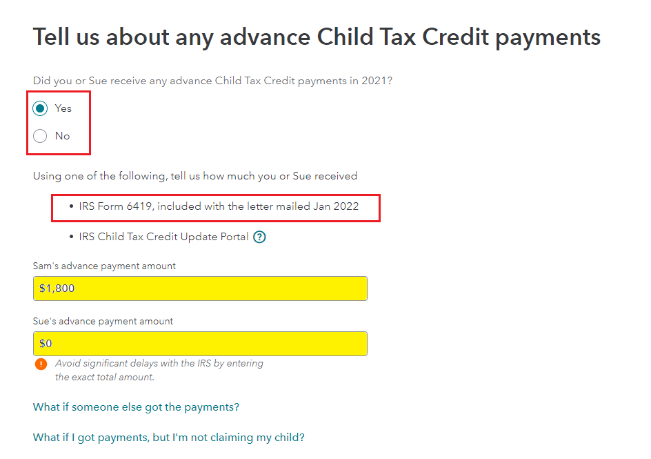 The following total amount is what is allowed for each child based on age, and the advance was expected to be no more than half of what would be allowed on the tax return for 2021.