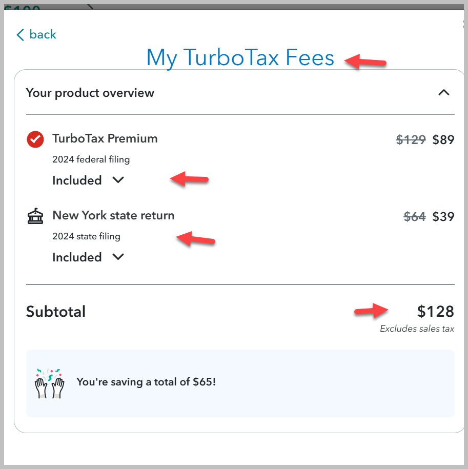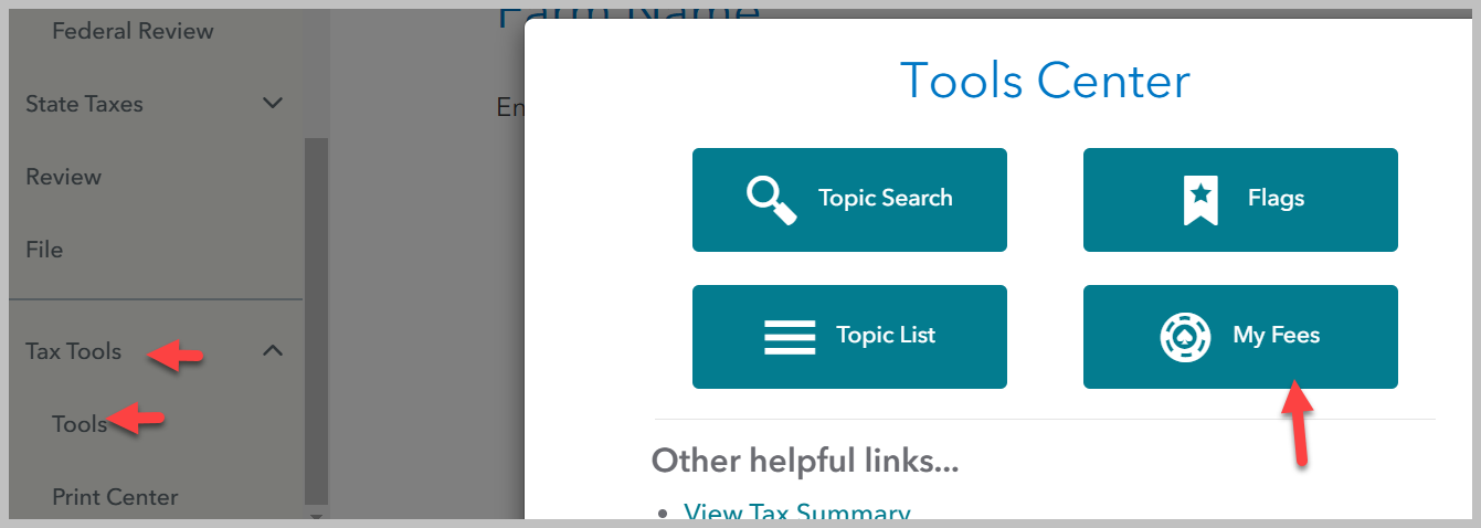 - Click on "My Fees" to see a summary of your Turbo Tax Fees.