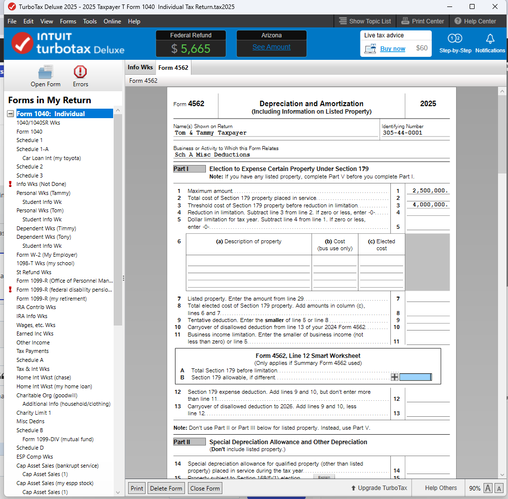 Stop deleting my posts. Your phone help told me to file an amended return as your Form 4562 is still locked. Not a good answer.