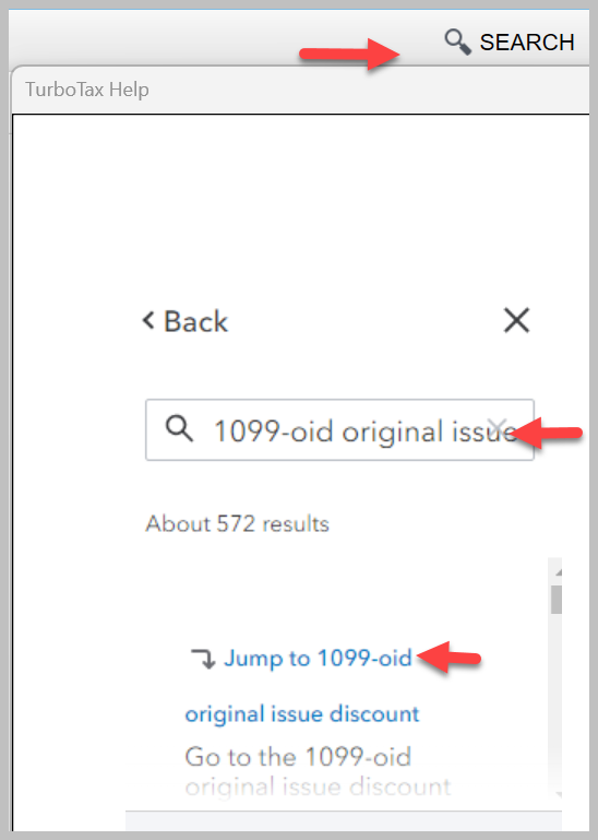 Click on "Search" and type "1099-oid original issue discount" in the search box: