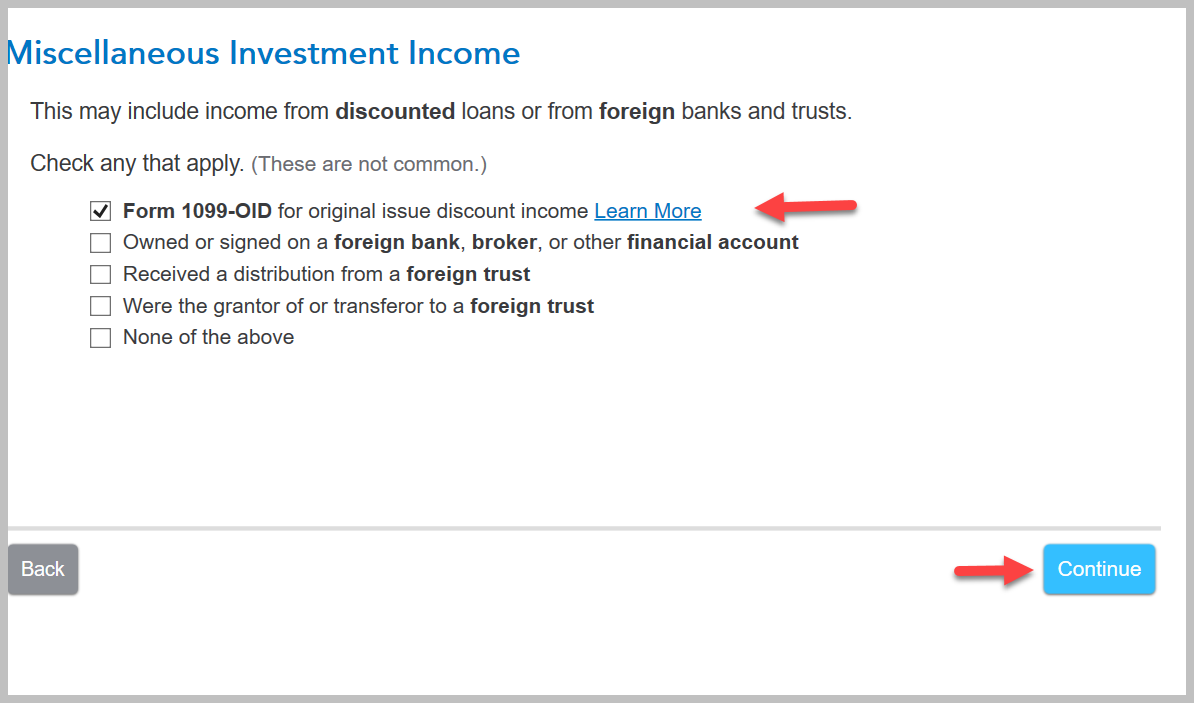 You can get to the section in TurboTax to enter your Form 1099-OID as follows: